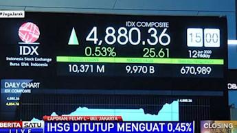 ISHG pada penutupan perdagangan Jumat (12/6/2020) ditutup naik 25,6 poin (0,52 persen) ke posisi 4.8...